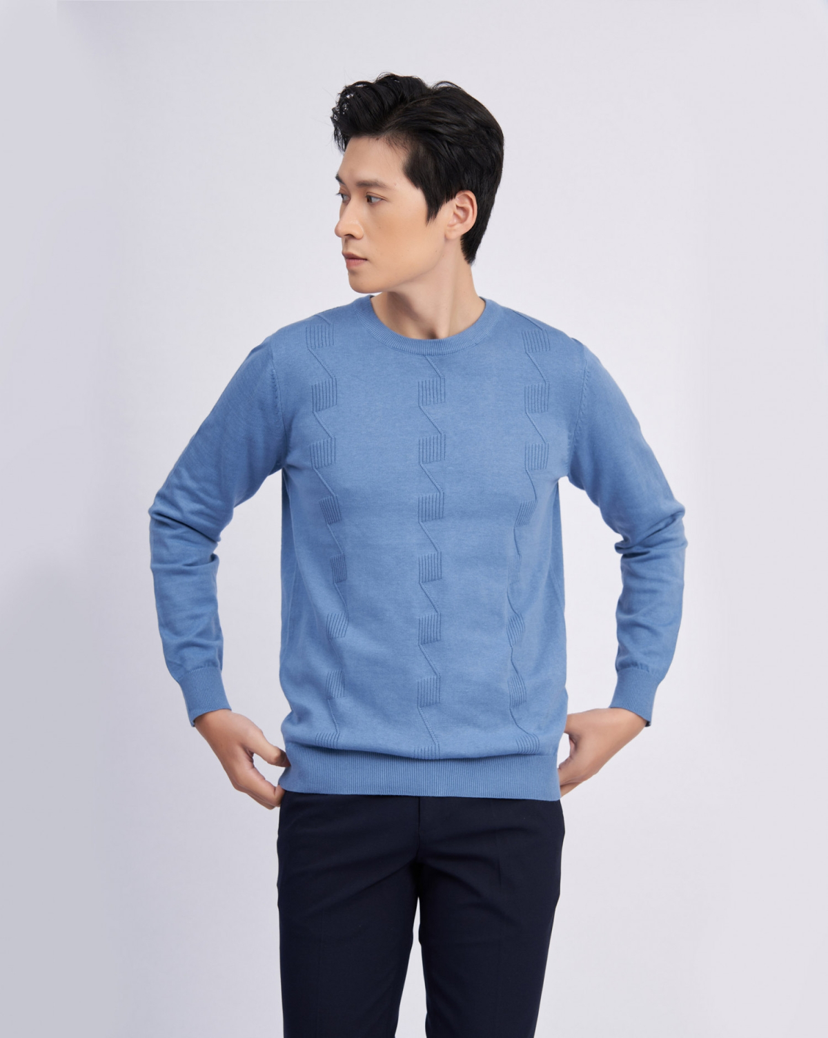 Áo Len Nam Cotton Họa Tiết 2004C Xanh Nhạt