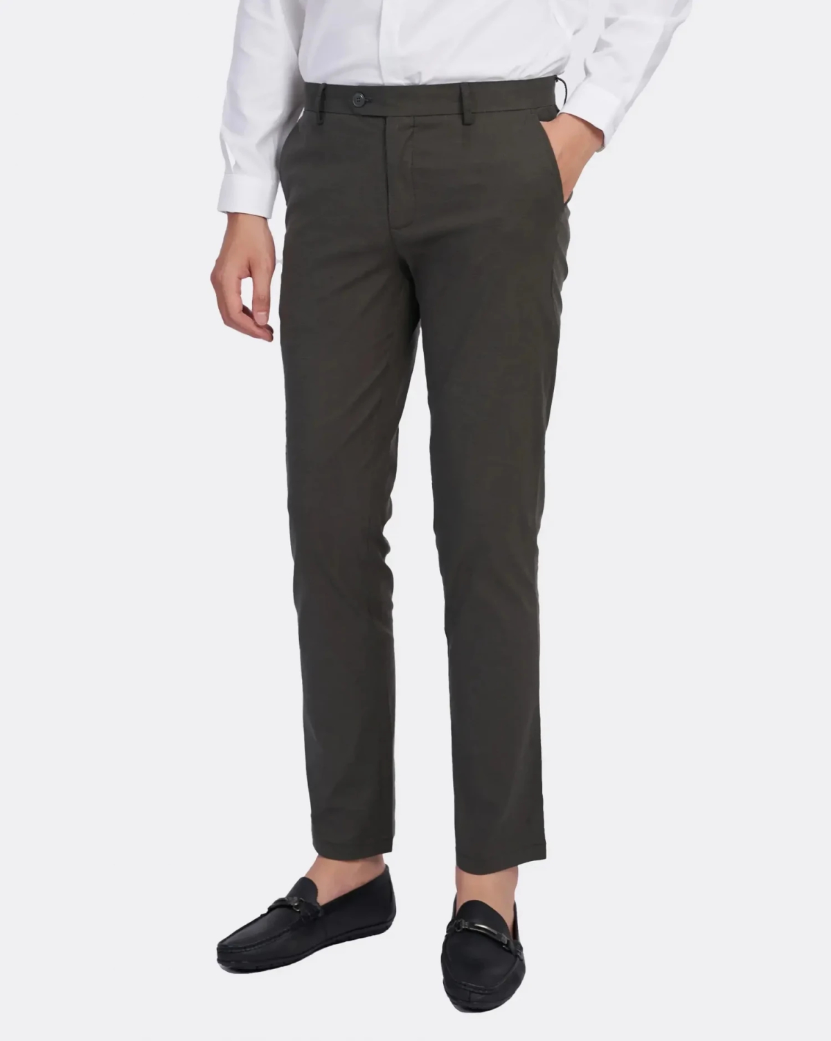 8. Quần Kaki Nam Dáng Slim Trơn 2001D Ghi Đậm
